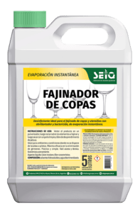- Desinfectante para el fajinado de copas y utensillos con abrillantador y bactericida, de evaporación instantánea.